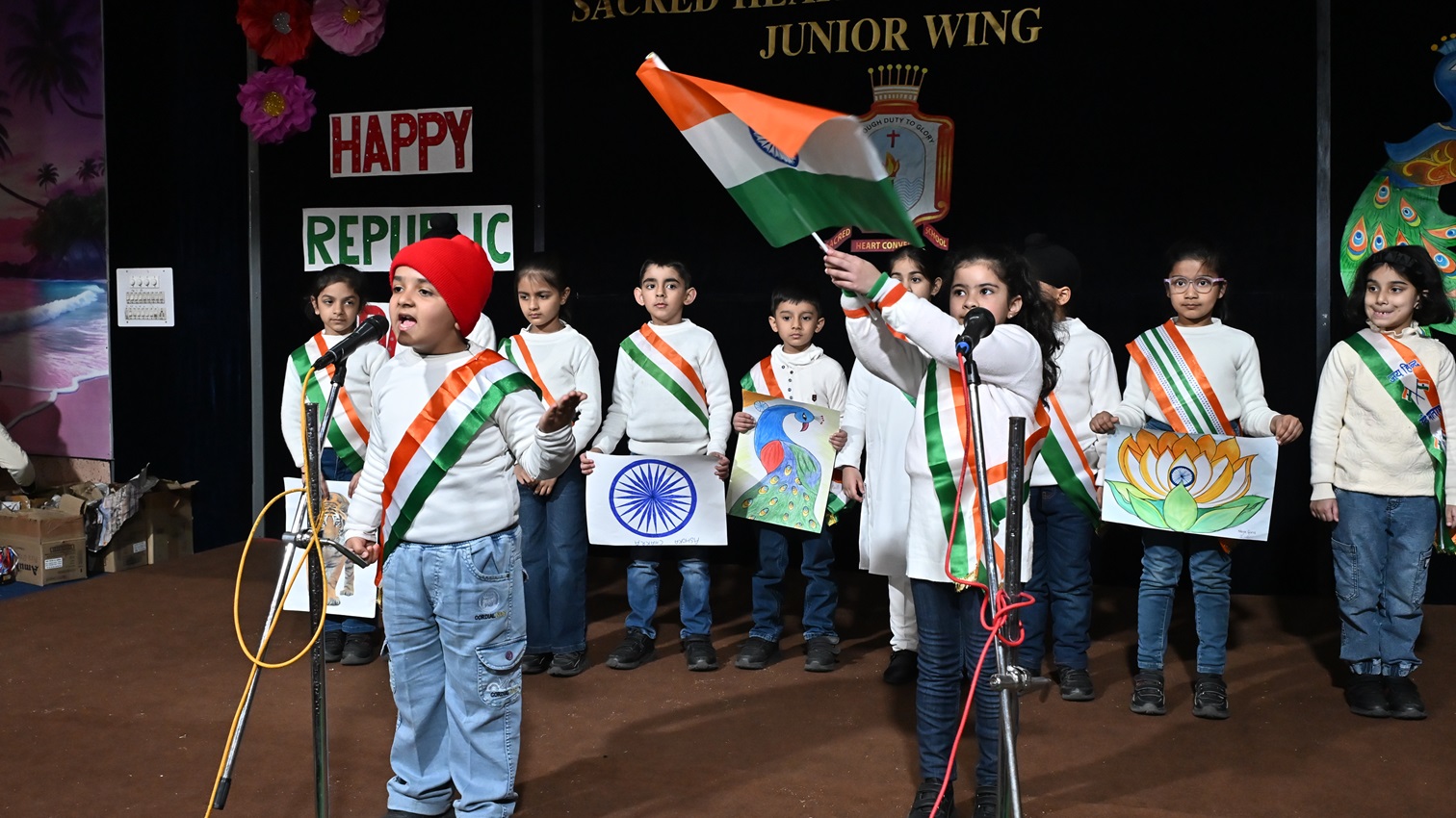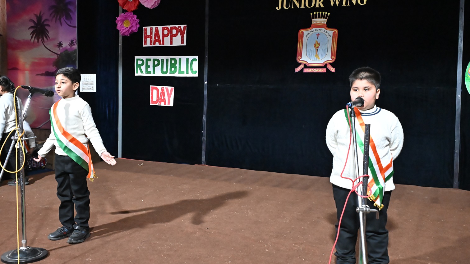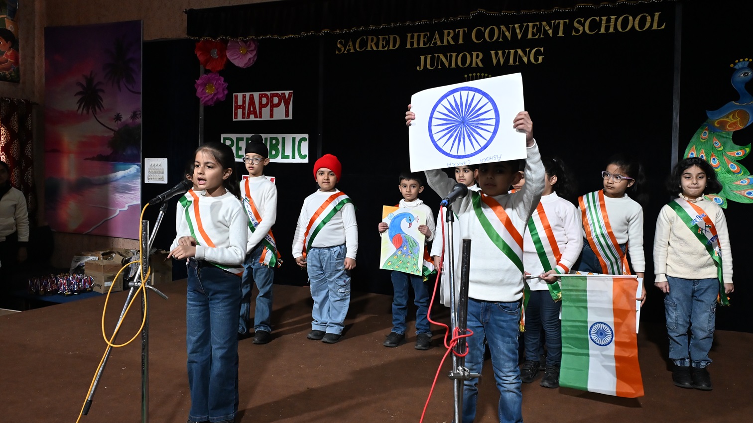 Description: As part of the Republic Day celebration enthusiastic March Past was conducted for the students of Grades 1 and 2. Our young learners marched with confidence and pride, beautifully reflecting the values of discipline, unity, and patriotism. The Republic Day Function of the Junior Block was equally heart-warming, presenting a graceful programme. The celebration began with a serene prayer and prayer song, followed by confident presentations on Fundamental Rights and Duties and soulful patriotic songs, expressing love and respect for our nation. The celebrations culminated on 26 January, marking the 77th Republic Day of India, with the unfurling of the National Flag by our School Manager, Sr Chantal , in the presence of the Reverend Sisters, filling the campus with pride and patriotic spirit. Jai Hind!