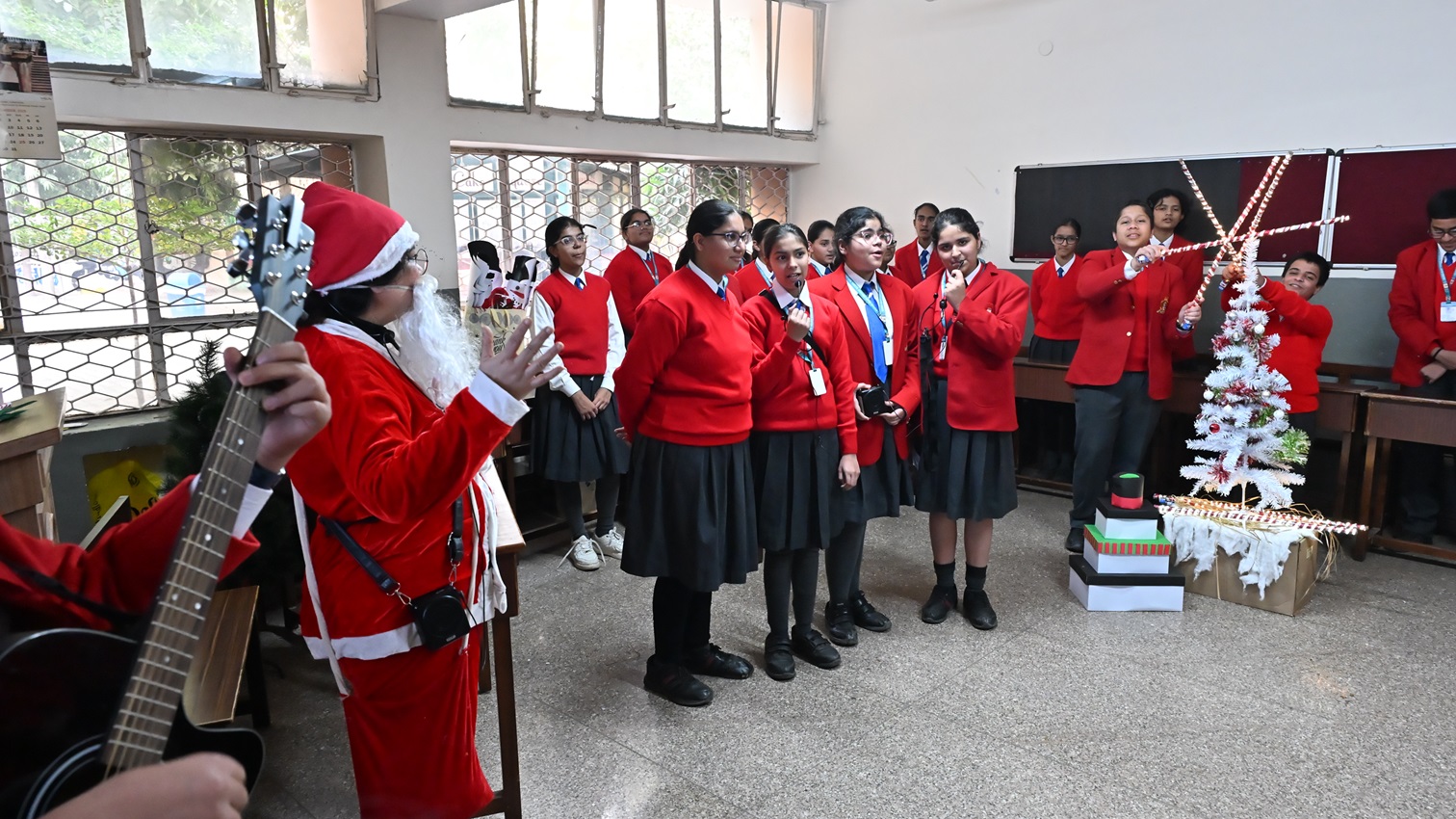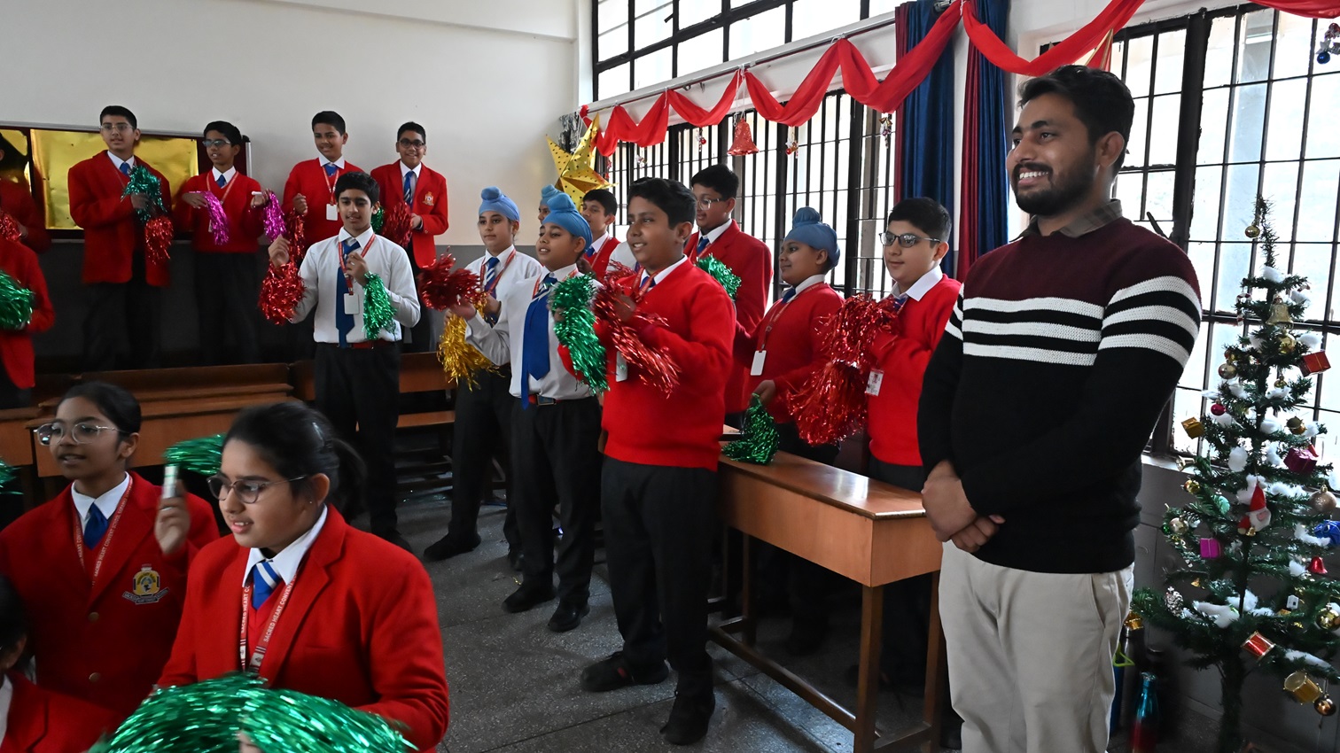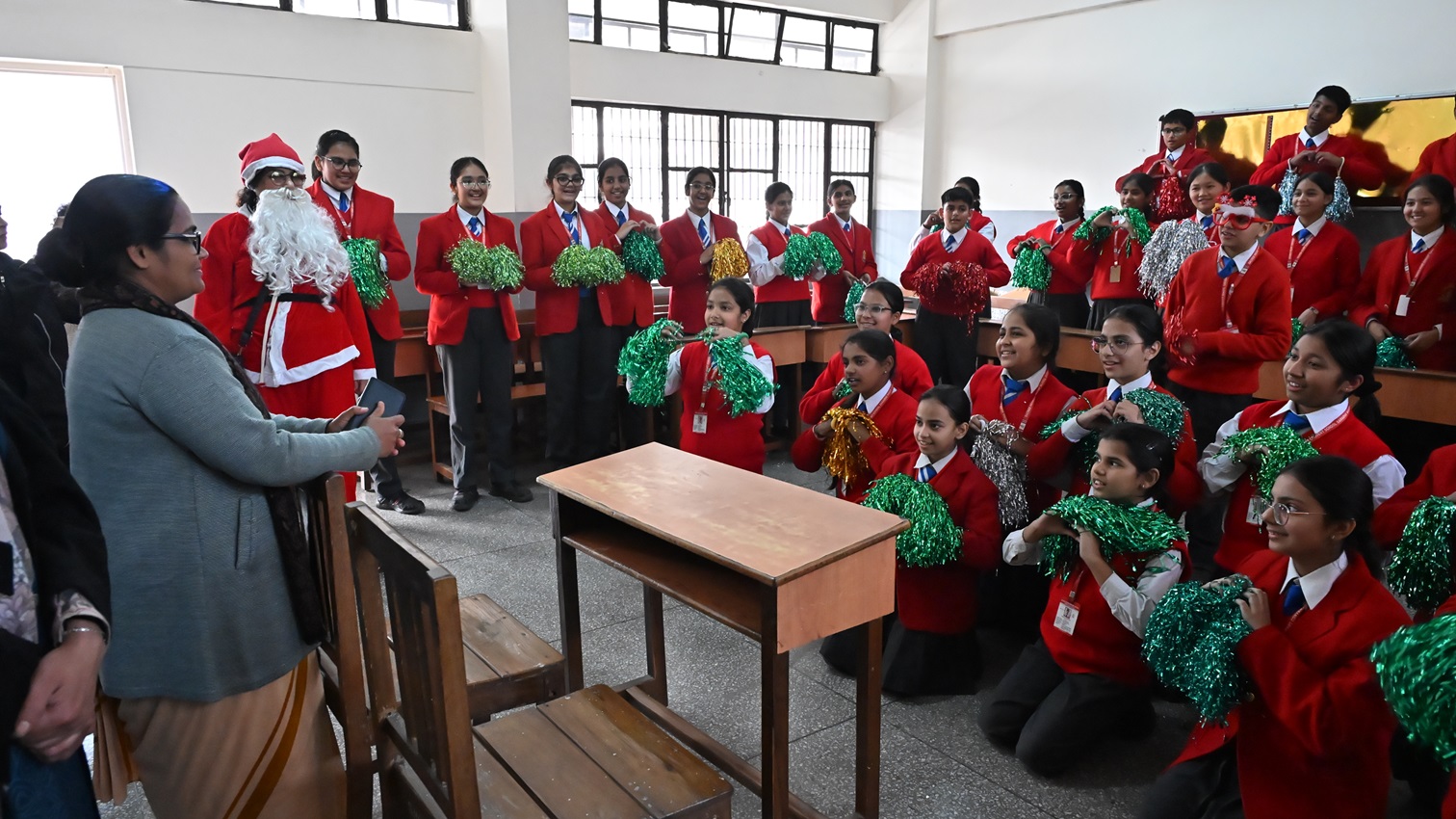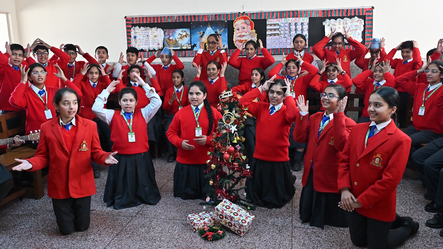 Description: The school resonated with festive cheer as students joyfully celebrated the festival of Christmas. With great enthusiasm, they adorned the boards with colourful decorations, sang melodious carols filled with zeal, and shared meals in a spirit of unity. The celebration beautifully echoed the values of love, peace, joy, and togetherness, strengthening bonds and nurturing the true essence of a convent atmosphere. The day was marked by warmth, happiness, and excitement, leaving hearts filled with the true spirit of Christmas.